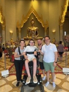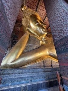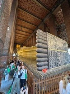 Bevor wir aber zu Wat Po fuhren wollte unser Führer ein paar Orchideen als Opfergabe für den Buddha mit uns kaufen. Er wollte eigentlich schnell nur welche kaufen, aber wir wollten uns den Markt anschauen und hatten dadurch einen ersten tollen Eindruck vom Leben in Bangkok, den wir auf jeden Fall weiterempfehlen. Anschließend ging es zum Tempel Wat Po, der an vielen Stellen durch Rampen auch für Rollstuhlfahrer zugänglich ist, auch wenn die Haupt-Buddhas nur über Treppen oder hinter hohen Schwellen für unseren Sohn nicht zugänglich waren. Auch war unsere kleine Feal Rampe im Einsatz, um ein paar Wege zusätzlich zu ermöglichen.