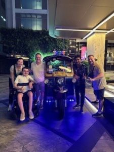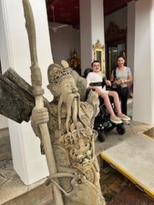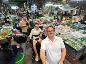 Der zweite Tag in Bangkok gestaltete sich komplett anders als der erste, weil wir bereits morgens um 7:30 Uhr am Hotel von einem Rollstuhlfahrzeug inkl. Fahrer und Führer abgeholt wurden. Die Tour http://OD01-1 Bangkok Tours & Chinatown Food Adventure | Wheelchair Holidays können wir nur empfehlen, da Sie uns zu einigen der schönsten Stellen von Bangkok geführt hat, auch wenn der Grand Palace leider geschlossen war. Stattdessen waren wir auf dem Flowermarket und in Wat Po, dem Tempel des liegenden Buddhas und der bekanntesten traditionellen Massageschule Thailands.