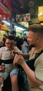 Der zweite Tag in Bangkok gestaltete sich komplett anders als der erste, weil wir bereits morgens um 7:30 Uhr am Hotel von einem Rollstuhlfahrzeug inkl. Fahrer und Führer abgeholt wurden. Die Tour http://OD01-1 Bangkok Tours & Chinatown Food Adventure | Wheelchair Holidays können wir nur empfehlen, da Sie uns zu einigen der schönsten Stellen von Bangkok geführt hat, auch wenn der Grand Palace leider geschlossen war. Stattdessen waren wir auf dem Flowermarket und in Wat Po, dem Tempel des liegenden Buddhas und der bekanntesten traditionellen Massageschule Thailands.